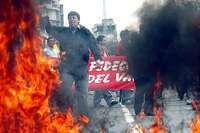 Cientos de trabajadores marcharon y quemaron neumáticos en las principales vías de Quito y otras ciudades, pero no lograron concretar su llamado a una huelga general contra el gobierno del presidente Alfredo Palacio, al que exigen la expulsión de la petrolera estadunidense Oxy, un incremento salarial de 30 dólares, y la no firma del acuerdo comercial.