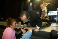 ¡Felipe, Felipe!, gritaban frenéticos en el Auditorio Nacional los animadores del concurrido acto panista "Mujeres, pasión por México", tratando de contagiar su frenesí a las casi 10 mil asistentes que, en calma la mayoría de ellas, serenas, sin evidente entusiasmo, veían pasar entre las butacas al abanderado del PAN a la Presidencia de la República, Felipe Calderón.