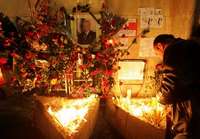 En la sede del Partido Socialista un hombre enciende velas en memoria de Slobodan Milosevic, fallecido el sábado en su celda del TPI para la ex Yugoslavia en La Haya