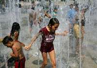 En el Día Mundial del Agua, niños del viejo San Juan, en Puerto Rico, se refrescaron en las fuentes públicas