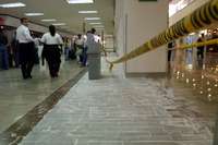 Trabajos de reparación en el piso del aeropuerto capitalino, en gráfica del 11 de marzo pasado