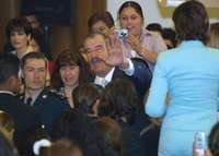 Fox estuvo ante un escenario que cualquier candidato a la Presidencia de la República hubiera querido tener: las mujeres, subidas en sillas, lo vitorearon y le dijeron "te vamos a extrañar" y "las mujeres unidas jamás serán vencidas". Con letreros improvisados en cartones y hojas de papel, mujeres de Guerrero, Baja California, estado de México, Distrito Federal, Nayarit y Morelos, entre otras entidades, interrumpieron varias veces el discurso del director de Fonaes, Gerardo Aranda, de la empresaria Martha Quiroz y del propio Presidente.