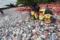 Destrucción de discos compactos, películas de formato dvd y juguetes, entre otros productos piratas, durante un operativo de la Procuraduría General de la República