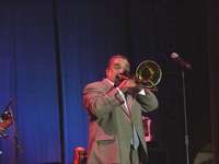 La Plaza Fundadores se llenó del ritmo salsero de Willie Colón, quien clausuró la sexta edición del Festival San Luis Potosí, el domingo pasado. En la imagen, el músico durante su presentación