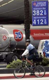 Tablero que anuncia el precio en 4.12 dólares el galón de combustible en una gasolinera de Beverly Hills, California