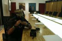 El subcomandante Marcos durante la entrevista concedida en las instalaciones de La Jornada