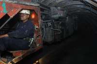 Un minero transporta en una locomotora material al fondo de la mina La Esmeralda, en San Juan de Sabinas, Coahuila