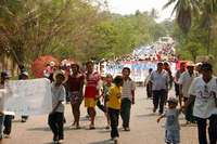 Alrededor de 2 mil personas, la mayoría miembros del Consejo de Ejidos y Comunidades Opositores a La Parota (CECOP), marcharon nueve kilómetros (tres por la carretera federal Acapulco-Pinotepa Nacional) en respuesta a la movilización que encabezó el gobernador Zeferino Torreblanca Galindo con ejidatarios partidarios de que se construya la hidroeléctrica en el municipio de Acapulco, Guerrero.