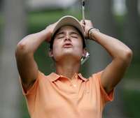 Lorena Ochoa se lamenta luego de fallar un tiro en el hoyo 15 en la final del circuito LPGA, celebrada en el Club de Golf de Kingsmill, Texas. La australiana Karrie Webb se adjudicó el primer lugar al acumular 70 golpes, siete menos que la mexicana