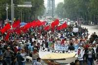 Marcha de ayer contra la militarización estadunidense de la frontera, sobre Paseo de la Reforma