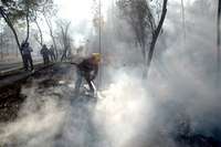 Bomberos de la delegación Alvaro Obregón sofocan un incendio de pasto en la tercera sección del Bosque de Chapultepec, el pasado 13 de abril