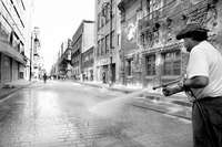 Trabajos finales en calles del Centro Histórico, al término de su remodelación, en noviembre de 2002