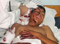 Un joven es atendido en el hospital después de que un coche con explosivos explotó ayer en la ciudad de Hillah, al sur de Bagdad, matando al menos a 12 personas e hiriendo a 32
