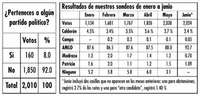 Ni la montaña de dinero invertida en propaganda ni las encuestas manipuladas han podido evitar que se desinfle el candidato del PAN, Felipe Calderón, de acuerdo con los resultados de nuestra última antiencuesta. Ningún partido cuenta con el número de miembros suficiente para decidir la elección y la predilección de los ciudadanos sin partido continúa del lado de AMLO. Sólo hicimos dos preguntas: 1) ¿Perteneces a algún partido político?, y 2) Si ya fuera la noche del 2 de julio, ¿por quién habrías votado?