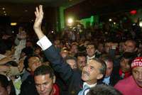 Felipe Calderón Hinojosa, candidato del Partido Acción Nacional, acudió a la sede central del blanquiazul para festejar con sus seguidores