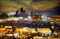 Miles de simpatizantes festejaron con Andrés Manuel López Obrador, en el Zócalo de la ciudad de México, la participación del tabasqueño en el debate entre presidenciables