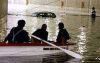 Rescate de vehículos en el paso a desnivel de Periférico y avenida Las Palmas, tras una fuerte lluvia, en agosto de 2003