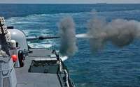 Momento en que el navío militar israelí dispara sobre la playa palestina
