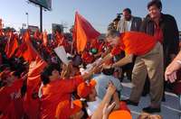 El cierre de campaña regional de hoy por la mañana se realizó en un campo deportivo de Jilotepec, donde tardó más de media hora en llegar hasta el estrado, debido a que a su paso se dedicó a saludar a todo aquel que se le acercaba. Por la tarde voló a Tijuana y este domingo, en la ciudad de México, recibirá el apoyo del ala rural del Partido Alternativa Socialdemócrata y Campesina (PASC).