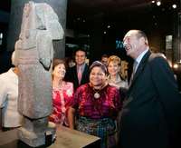 Bajo la imagen emblemática del museo, reproducción gigante de una figura prehispánica mexicana, y frente a sus invitados, entre los cuales figuraron el secretario general de la Organización de las Naciones Unidas, Kofi Annan, y la Nobel de la Paz, Rigoberta Menchú, dijo Chirac: