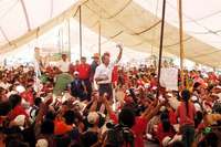 El candidato presidencial de la Alianza por México, Roberto Madrazo Pintado, durante el cierre de campaña que efectuó ayer en Santa Ana Chautempan, Tlaxcala
