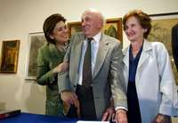 Sari Bermúdez, presidenta del Consejo Nacional para la Cultura y las Artes, Walter Gruen y Alexandra Varsoviano, ayer en el Museo de Arte Moderno, durante la conferencia de prensa en la que se informó acerca de los resultados exitosos en el litigio por las 39 obras de Remedios Varo, donadas por Gruen al pueblo de México, que se exhiben en ese recinto cultural