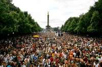 Berlin, 16 de julio. Alrededor de un millón de personas participaron el sábado en la 16 edición de Love Parade de Berlín, un desfile de carrozas al compás de la música tecno, con el eslogan "el amor está de regreso" informaron los organizadores.