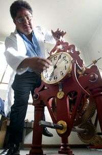 El experto en la materia Antonio Martínez, muestra uno de los relojes de Catedral que están siendo reparados