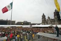 También les pidió no descuidar la limpieza en los 31 campamentos del Zócalo -donde anoche la actividad era ya febril entre puestos de comida, de playeras, banderas, pejemuñecos y las tiendas de campaña o bolsas de dormir instaladas en la plaza-, y los 16 que se colocaron desde Madero hasta el Periférico.