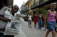Un cubano vende en una plaza de La Habana el diario oficial Granma, en donde se dice que hay confianza en la fuerza del presidente Fidel Castro