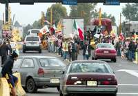 Integrantes de la coalición Por el Bien de Todos tomaron ayer, bajo el concepto de "libre tránsito", los cinco principales accesos carreteros a la ciudad de México e impidieron el cobro del peaje en tres autopistas. Estas acciones forman parte de las medidas de resistencia civil pacífica, que se intensificarán en los próximos días.