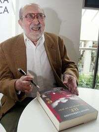 Emilio Carballido firma uno de los ejemplares de su reciente libro, D.F. 52 obras en un acto