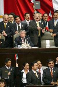 Ampliar la imagen Senadores y diputados perredistas y petistas ocupan la tribuna del Palacio Legislativo, antes de que llegara el presidente Vicente Fox a entregar su sexto Informe FOTOJosé Carlo González