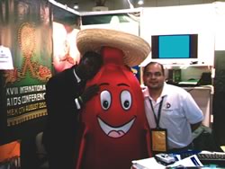 Las botargas del Censida llamaron la atención de los asistentes a la XVI Conferencia Internacional de Sida, en Toronto, Candá. |