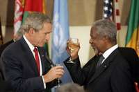 Bush y Kofi Annan, ayer durante un refrigerio servido en el cuartel general de la ONU