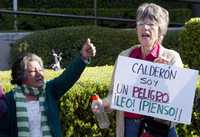 Integrantes del movimiento de resistencia civil que encabeza Andrés Manuel López Obrador, durante la protesta que realizaron ayer frente a la casa de transición de Felipe Calderón Hinojosa