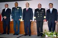 Felipe Calderón con los nuevos titulares de SSP, Genaro García Luna; Defensa, Guillermo Galván; Marina, Mariano Francisco Saynez, y PGR, Eduardo Medina Mora. Este último debe ser ratificado por el Senado