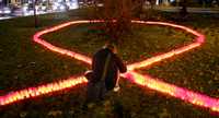 Símbolo de la lucha antisida, luego de una marcha en Berlín con motivo del día internacional contra la enfermedad