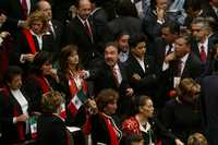 Se les iluminan los rostros. Gritan más fuerte: "¡Mé-xi-co, Mé-xi-co!" Dueños de la mayor parte de la tribuna, los panistas aplauden y aplauden porque acaban de entrar Felipe Calderón y Vicente Fox. No, no todavía. Acaban de entrar los priístas que harán el quórum y darán legitimidad al nuevo Presidente de la República.