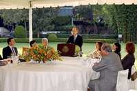 Gobernadores, miembros del gabinete y colaboradores asistieron a una comida en los jardines de la residencia oficial de Los Pinos