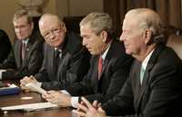 El asesor de Seguridad Nacional, Steve Hadley; el subjefe del Grupo de Estudio de Irak, Lee Hamilton, el presidente George W. Bush, y el presidente del grupo de expertos, James Baker, ayer en Washington durante la presentación del informe sobre la situación de la guerra