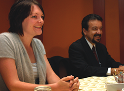 La investigadora británica Laura Waters y el médico mexicano Alejandro Vargas al participar en la presentación en México de la nueva presentación del medicamento antirretroviral Kaletra, de laboratorios Abbott. |