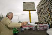 Los vecinos se manifestaron bajo un anuncio que en 2004 mandó colocar el entonces jefe de Gobierno, Andrés Manuel López Obrador, para advertir que quedan prohibidas las construcciones en la barranca, en el lado que corresponde al territorio del Distrito Federal.