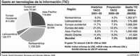 Explicó que el gasto en las TIC en México "es muy bajo", si lo comparamos con otros países, con los cuales también competimos. Mientras en el país se destina 3.5 por ciento del PIB a este rubro, en Estados Unidos este indicador alcanza 8.8 por ciento. Sin embargo, el mismo modelo se repite en toda América Latina.