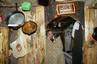 En la primera de ellas, dos piezas componen su casa, forrada con cartones, retazos de alfombra y plástico, para evitar que el aire helado se cuele por las rendijas de los tablones de la madera de que están hechos sus estrechos cuartos. En la segunda, el escenario es el mismo, salvo que para la estancia que sirve como cocina, ya no alcanzó el material para cubrir las ranuras.