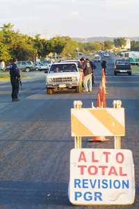 Ampliar la imagen Integrantes de la AFI colocaron un retén a la entrada de Apatzingán como parte del operativo militar y federal que realizan sobre Michoacán Foto: La Jornada Michoacán