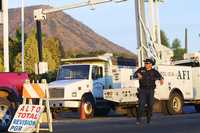 Elementos de la Agencia Federal de Investigación en uno de los retenes instalados en la entrada de Apatzingán