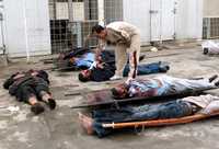 Un médico examina en el hospital de Baquba los cuerpos de varios iraquíes muertos durante la ola de violencia sectaria