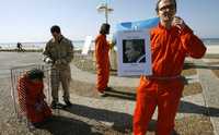 Activistas israelíes se manifestaron ayer en Tel Aviv para exigir el cierre de la prisión de Guantánamo, Cuba, en la que Estados Unidos mantiene a unos 400 detenidos desde finales de 2001 sin presentarles cargos