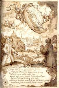 Dibujo previo para el frontispicio del Escudo de Armas de México, realizado alrededor de 1743 por el artista novohispano José de Ibarra. Incluido en el libro de Paula Mues, se trata del primer bosquejo que se tiene de una pintura de ese periodo